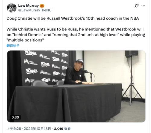 “快船主教练泰伦·卢在2023年说:我们希望威少做自己;掘金前主教练马龙在2024年说:我依然希望威少做自己;国王主教练克里斯蒂在2025年说:我只希望威少做自己!我们好像陷入了循环!”