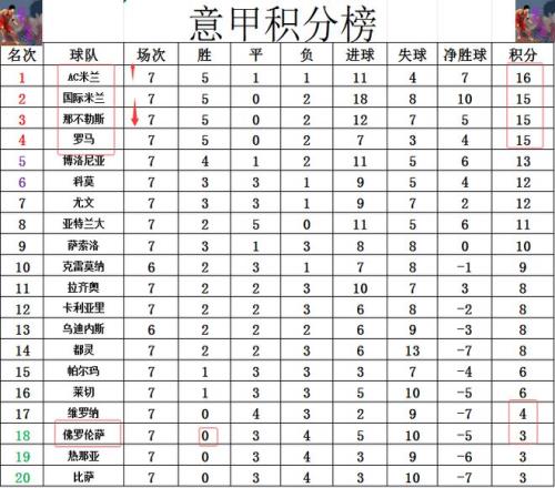 积分榜方面,AC米兰今天逆转绝杀赢球后,超过国米,那不勒斯和罗马1分,时隔2年多再次登顶意甲榜首。国米,那不勒斯,罗马净胜球优劣势分列2到4位。惨遭逆转的佛罗伦萨,新赛季依然是一胜难求,只拿到3分的他们还是陷在降级区。尤文输给科莫后,近4轮3平1负连续不胜,他们排名持续下跌到,现在已经跌到第7。