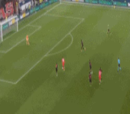 上半场补时第3分钟,杜埃带球内切兜射破门,1-4!