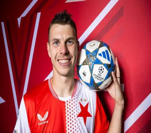 欧冠主场对阵阿森纳赛前,布拉格斯拉维亚中场道杰拉出席了发布会。
