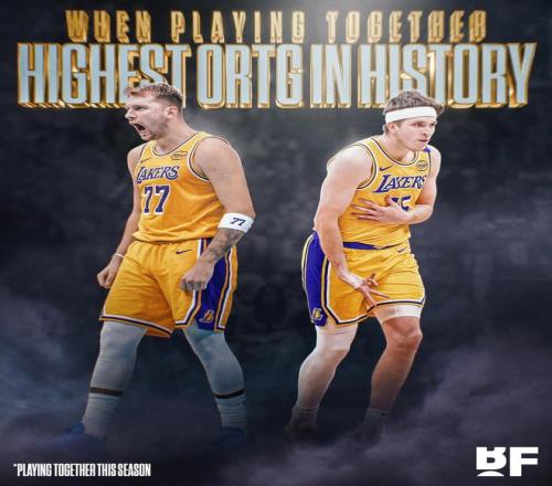 美媒Basketball Forever晒出一组有关湖人的数据。据统计,本赛季当里夫斯和东契奇同场时,湖人的进攻效率达124.6,这个数据排名NBA历史第一位。这也意味着,紫金军团双核东契奇、里夫斯创下了NBA历史第1的神迹。