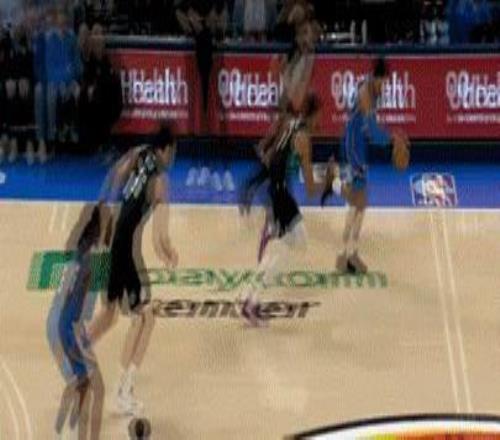 比如利用反击机会轻松得分,或者瞅准时机,背身单打那些比他矮小的对手,就像“大吃小”一样。在阵地进攻中,他更多的是扮演一个穿针引线的角色,把球权交给队友,自己去跑位、去策应。
