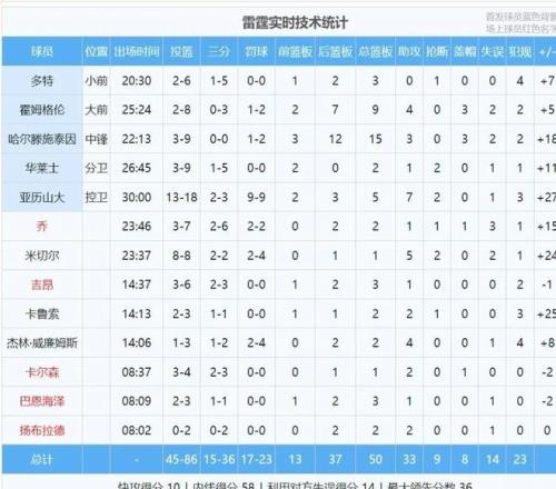 但你别说,这小伙子学东西可真快!很快他就找回了状态。在防守端,他沉退防守挡拆,不仅成功限制了卡鲁索的突破,还没让哈腾抢到前场篮板,算是把第一节的失误给弥补回来了。在进攻端,他给格兰特做挡拆,那“墙”扎得又稳又厚实,对手想绕都绕不过去。