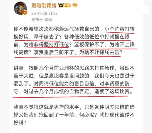 中国男篮输给韩国队,很多球迷都是十分不甘心!CBA记者“别跑刚背猪”也是十分不甘心,于是连续4问郭士强:小个阵容打转换好用,早干嘛去了?